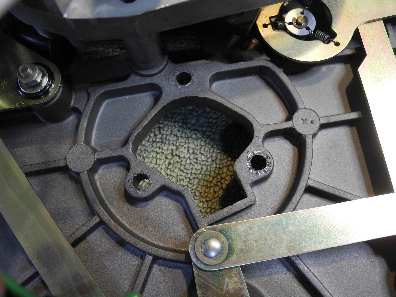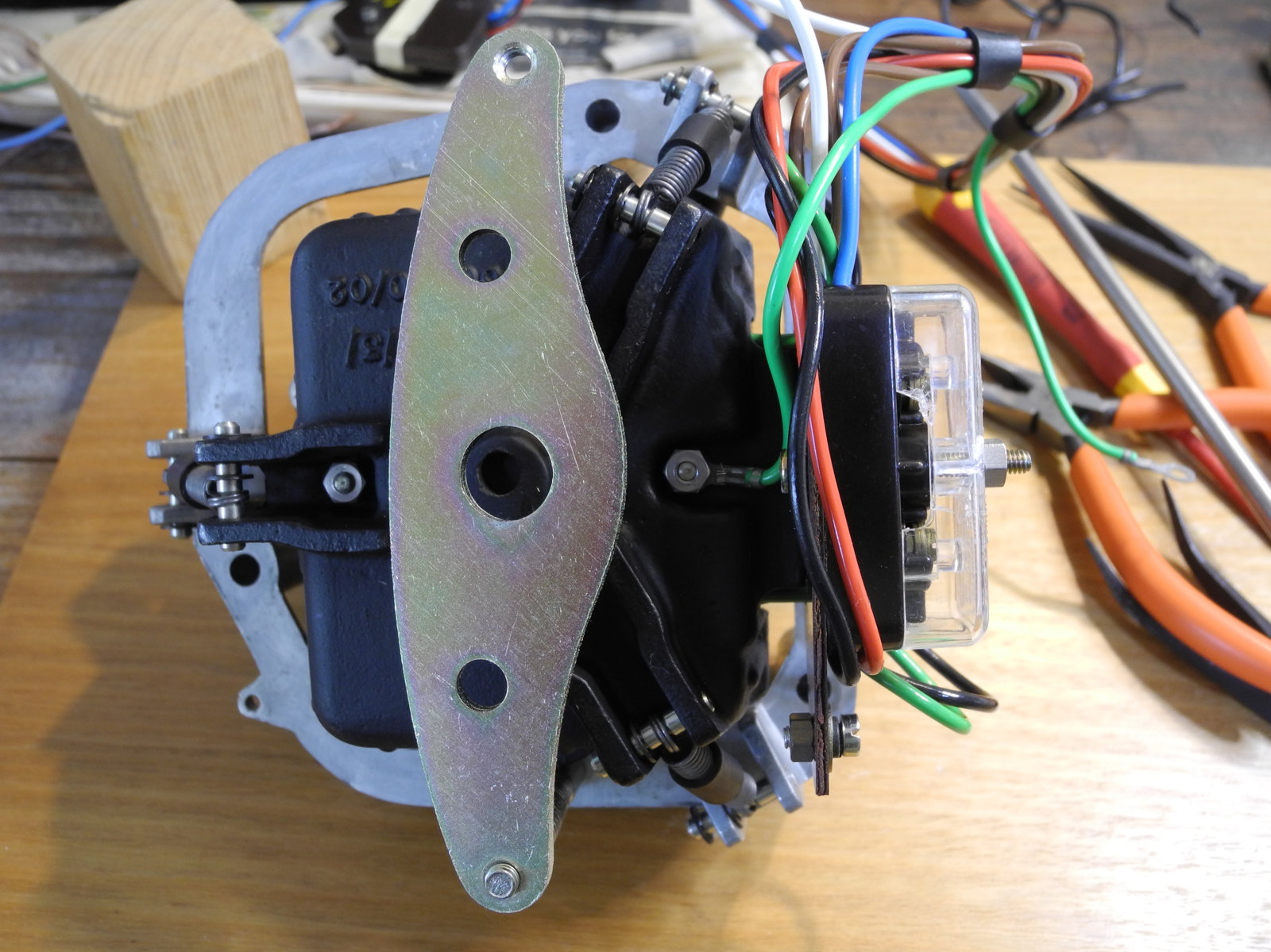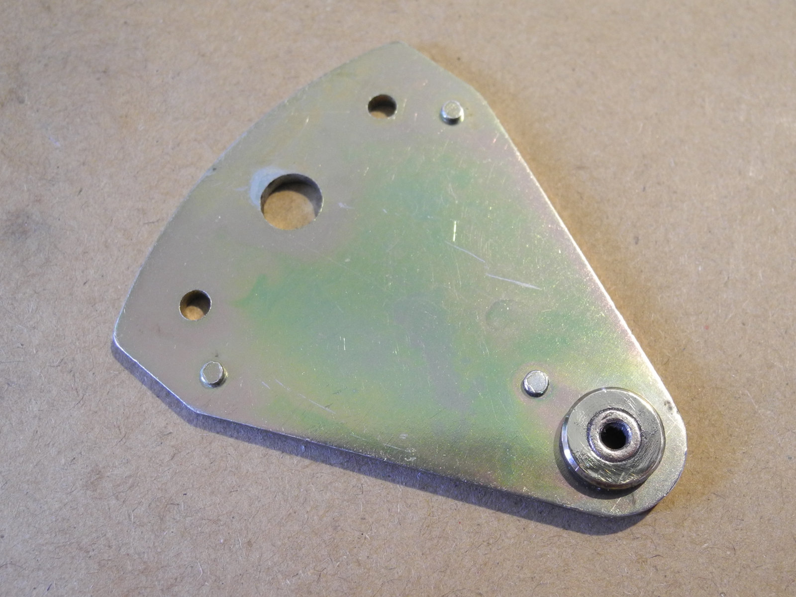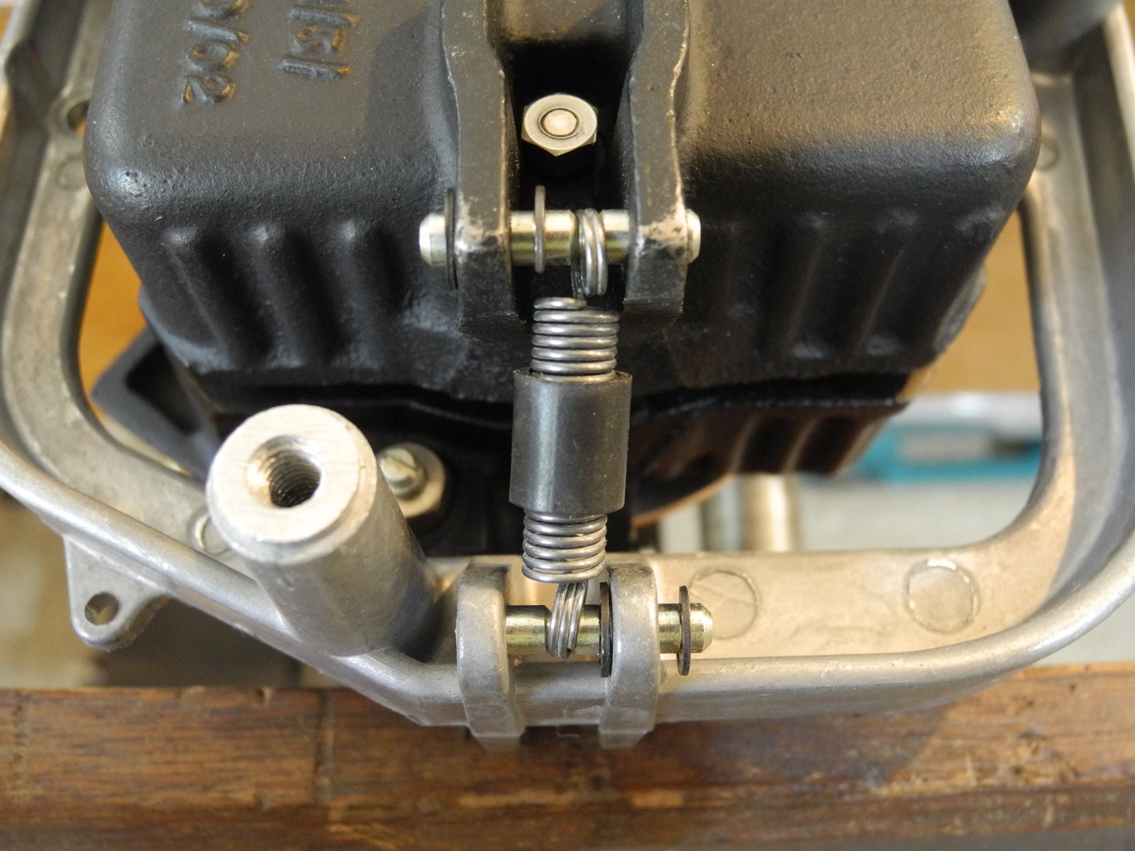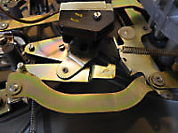 These levers and other moving parts are made from thin steel plate (electroplated to suppress rust) cut and pressed into various custom shapes. The electroplating has a yellow colour, so is probably cadmium, which these days is considered toxic, so care was taken to wash hands well after handling these parts.
